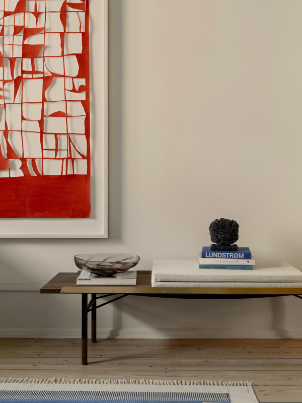 The Table Bench is a uniquely elegant piece that adapts effortlessly to different uses around the home. Its sophisticated design combines contrasting materials and textures in a timeless way. Perfect as a low table for books and art or as a comfortable seat with an optional cushion, the Table Bench remains one of Finn Juhl’s most beloved designs. It can be customized with two solid brass strips along the top to keep the cushion in place, creating a convenient spot for personal items beside the seating area.
