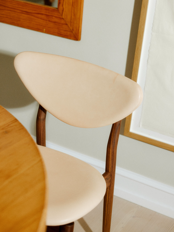 To this day, Finn Juhl's designs remain unconventional, defying expectations through subtle yet distinctive details. As FInn Juhl himself once remarked, "the deviation is in the detail." This holds true for his 108 Chair, defined by elegant features such as angled side bars and sliding cross bars. These elements introduce unexpected movement and a dynamic rhythm to the construction.