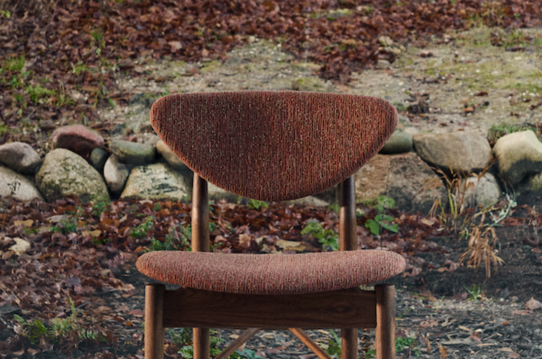 The 108 Chair in walnut with 'Nalia' upholstery in the colour '0580'. Photo: Elisabeth Heltoft for Sahco
