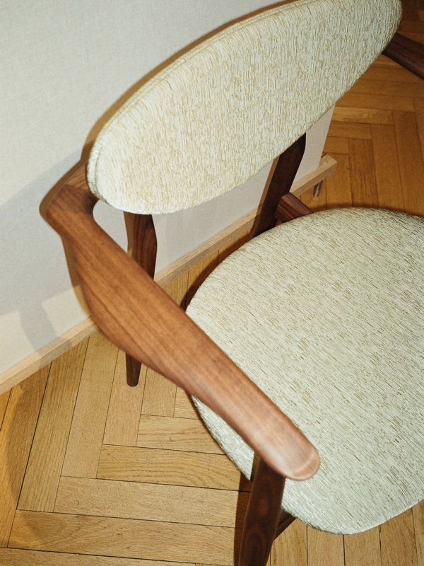 The 109 Chair in walnut with 'Beda' upholstery in the colour '970'. Photo: Elisabeth Heltoft for Sahco