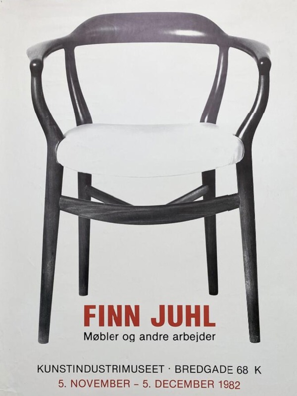 The original poster from the retrospective exhibition at what is now Designmuseum Danmark, known at the time as Kunstindustrimuseet. The exhibition highlighted, among Finn Juhl's other pieces, the sculptural chair from 1944.