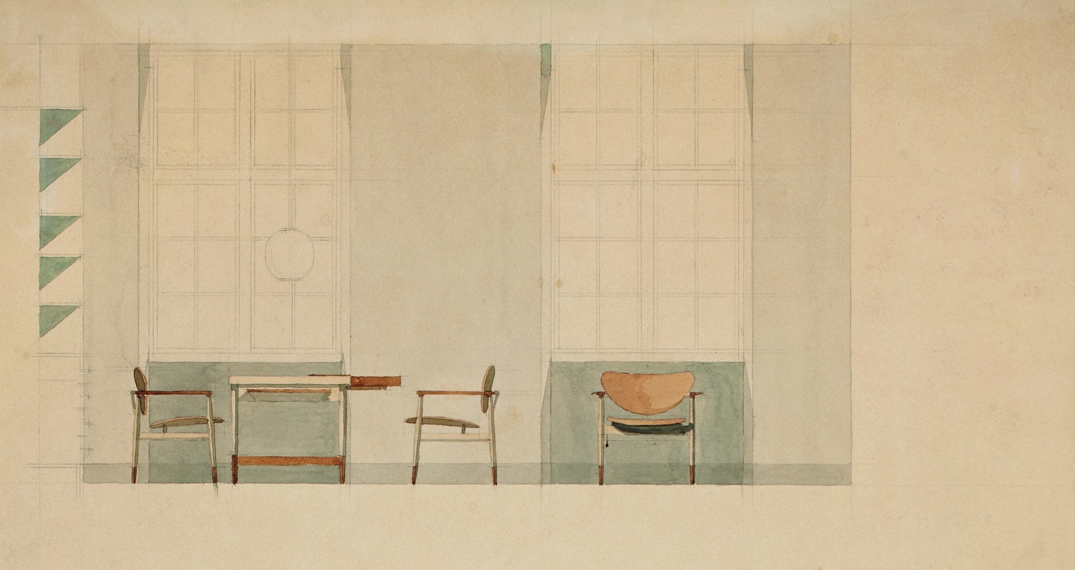 Finn Juhl's original watercolour drawing of the 48 Chair from 1948. Photo credit: Pernille Klemp, Designmuseum Danmark