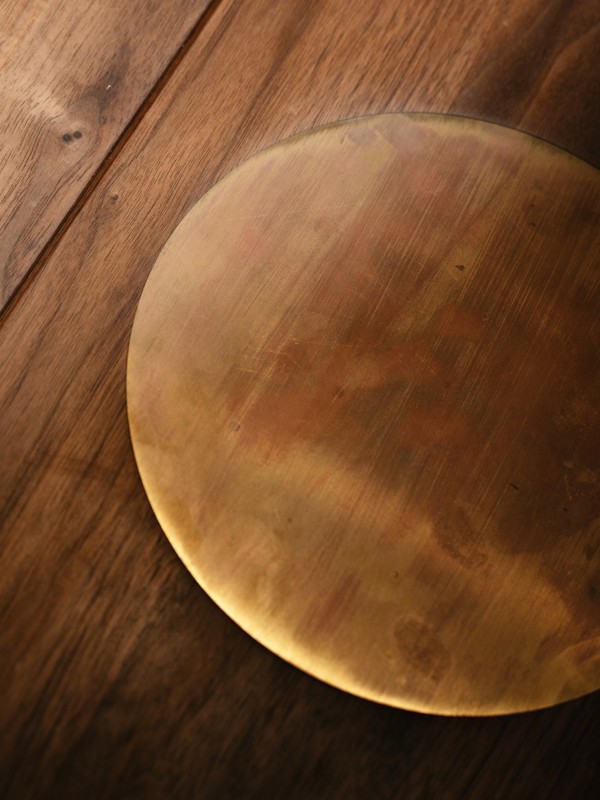 The Butterfly Table in walnut with a circular brass inlay.