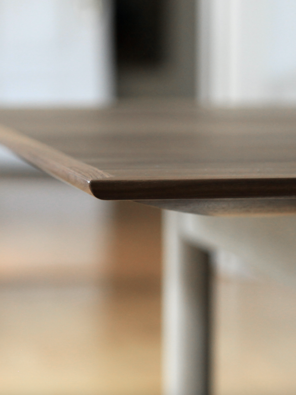 Details of the Kaufmann Table. Manufactured in oak and walnut.
