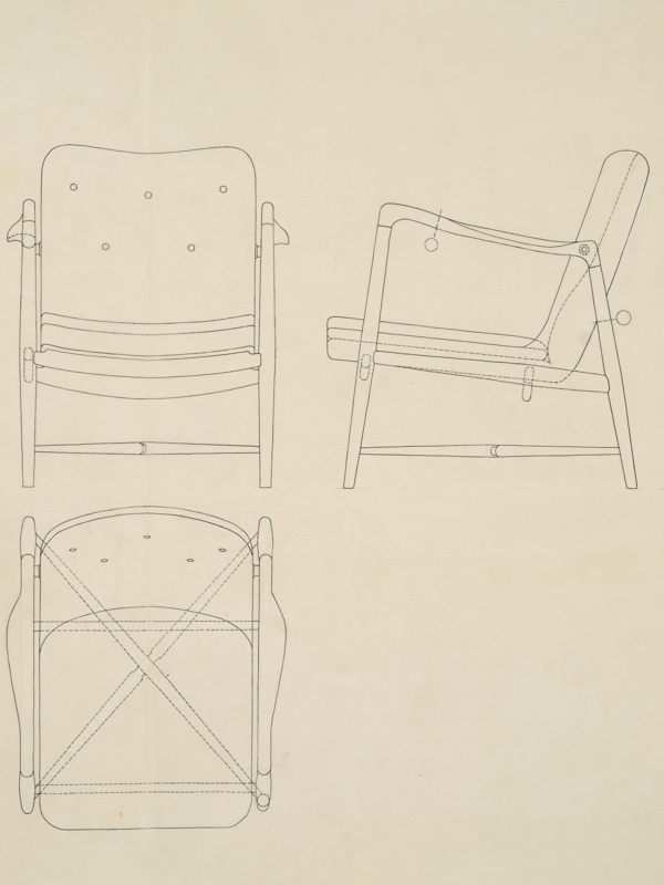 Finn Juhl's original drawing of the Fireplace Chair. Photo credit: Pernille Klemp and Designmuseum Danmark