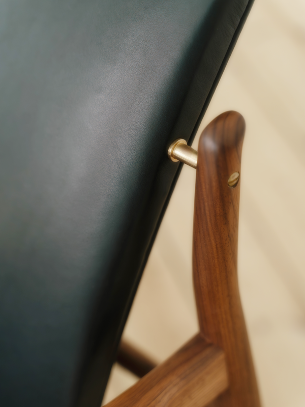 Though one of the few Finn Juhl chairs made for industrial production, it retains fine detailing. The seat and backrest are lifted from the frame, and the armrests feature the iconic paper knife detail found on the 45 Chair.