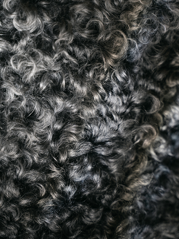 From dense, frizzy curls to large, soft, and lustrous ones, each Gotland sheep is unique – and no two hides are ever the same. Naturally, the wool varies in color from light to dark grey, often featuring subtle tones of white or black. As the hides are entirely natural, no dyes or pigments are added during processing.
