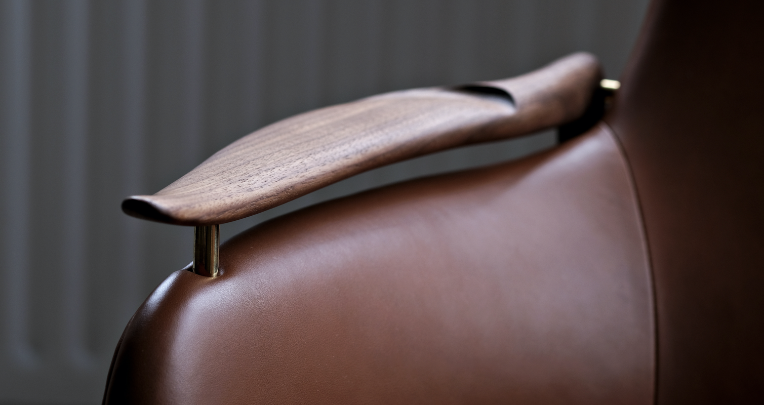 The 53 Sofa is an extravagant piece of furniture. It integrates the lightness and elegance of a wooden frame with an upholstered corpus to embrace the seated person with genuine comfort. Finn Juhl’s characteristic design feature of separating the carrying elements from the carried is also at play in the 53 Sofa. However, this time, the separation is achieved via more sophisticated means to give the sofa a light and elegant expression. The rear legs, completely free from upholstery, protrude from the floor. In a single, unbroken motion, they change direction and expand into an organically shaped armrest, almost animalistic in nature.
