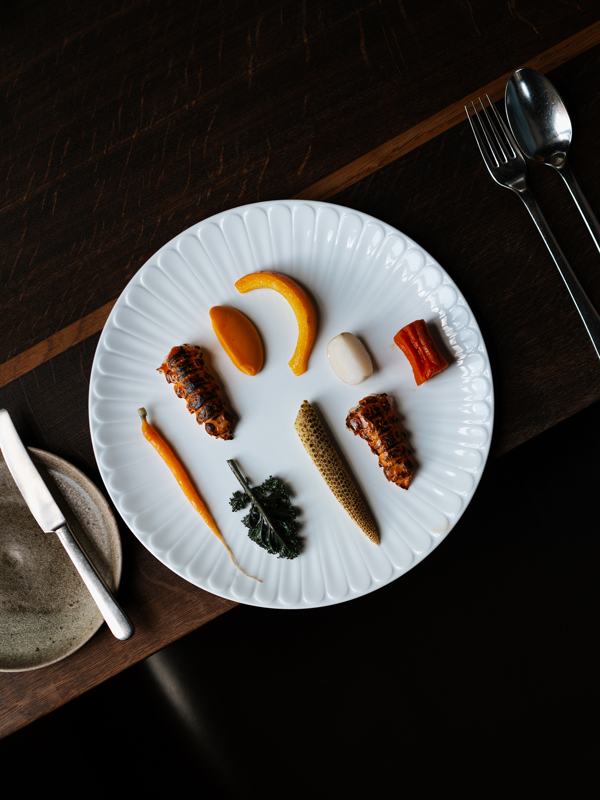 Formel B offers an experience out of the ordinary in warm and welcoming surroundings, characterised by travertine, dark wood and sandy colours, creating the perfect setting for a unique dining experience. The dining tables are accompanied by some of Finn Juhl’s most exclusive and iconic designs: the Egyptian Chair from 1949 and the 46 Chair from 1946, both crafted in oak with leather upholstery. Originally produced by master cabinetmaker Niels Vodder, the chairs are outstanding examples of Finn Juhl's distinctive design language.