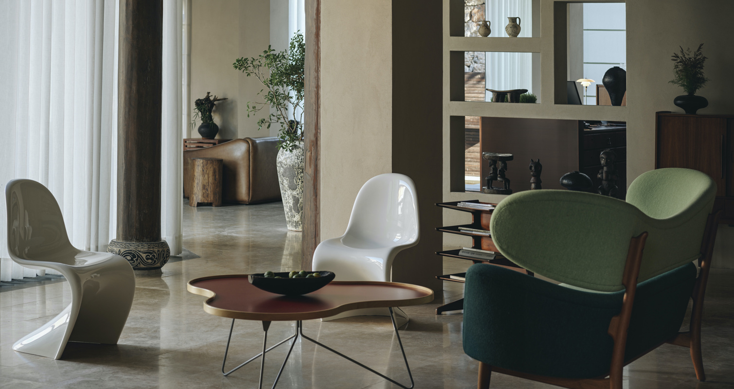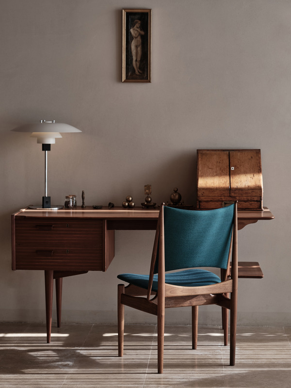 Discover the range of Finn Juhl pieces that are featured at Hylla Hotel. Click through the furniture below to dive into the history behind the creation of the individual pieces and find inspiring, captivating images along with information about different material options and the sizes available.