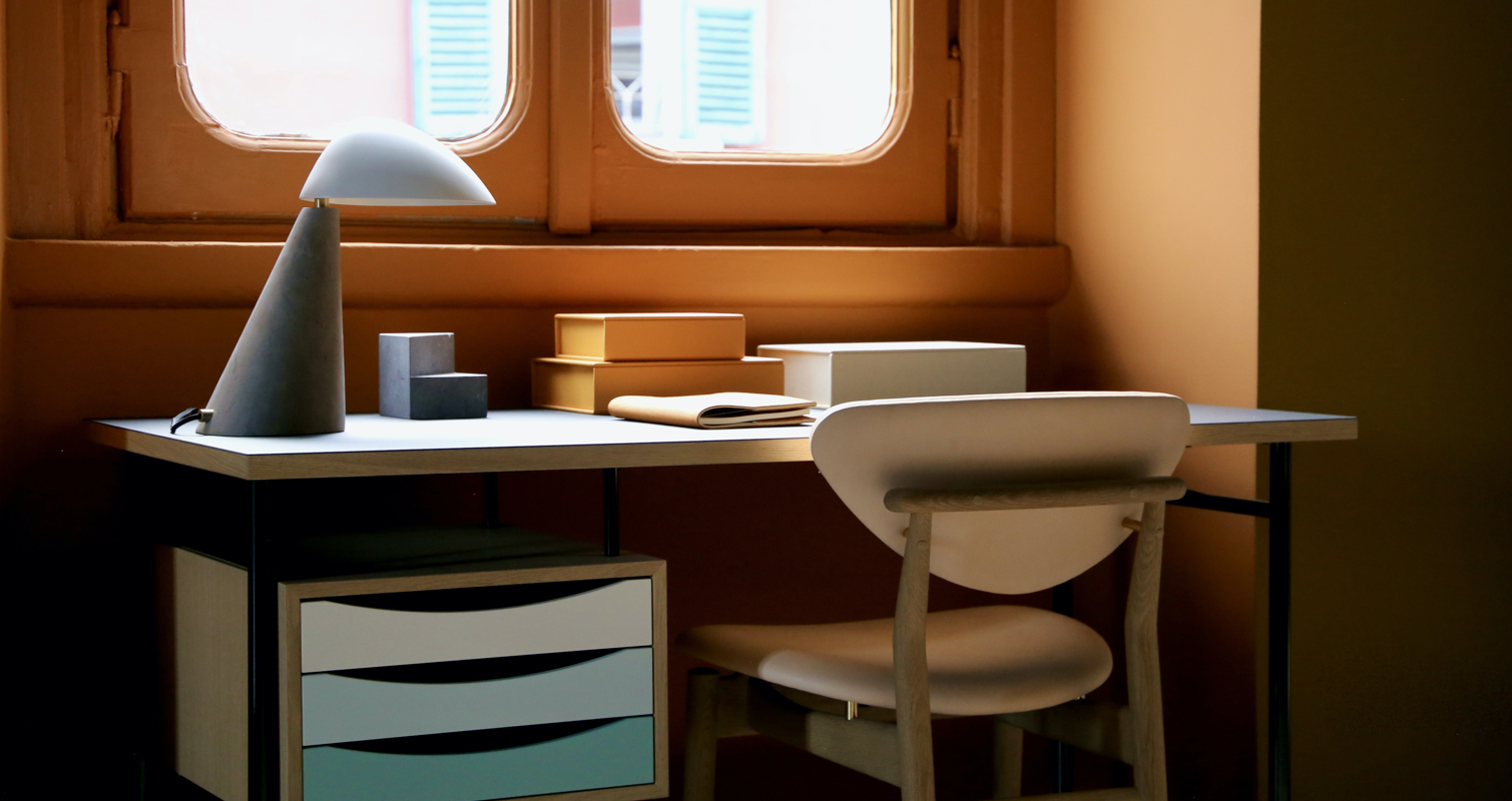 Discvoer the range of Finn Juhl pieces featured in the 'I'll Be Your Mirror' apartment installation. Click through the furniture below to dive into the history behind the creation of the individual pieces and find inspiring, captivating images along with information about material options and the sizes available.