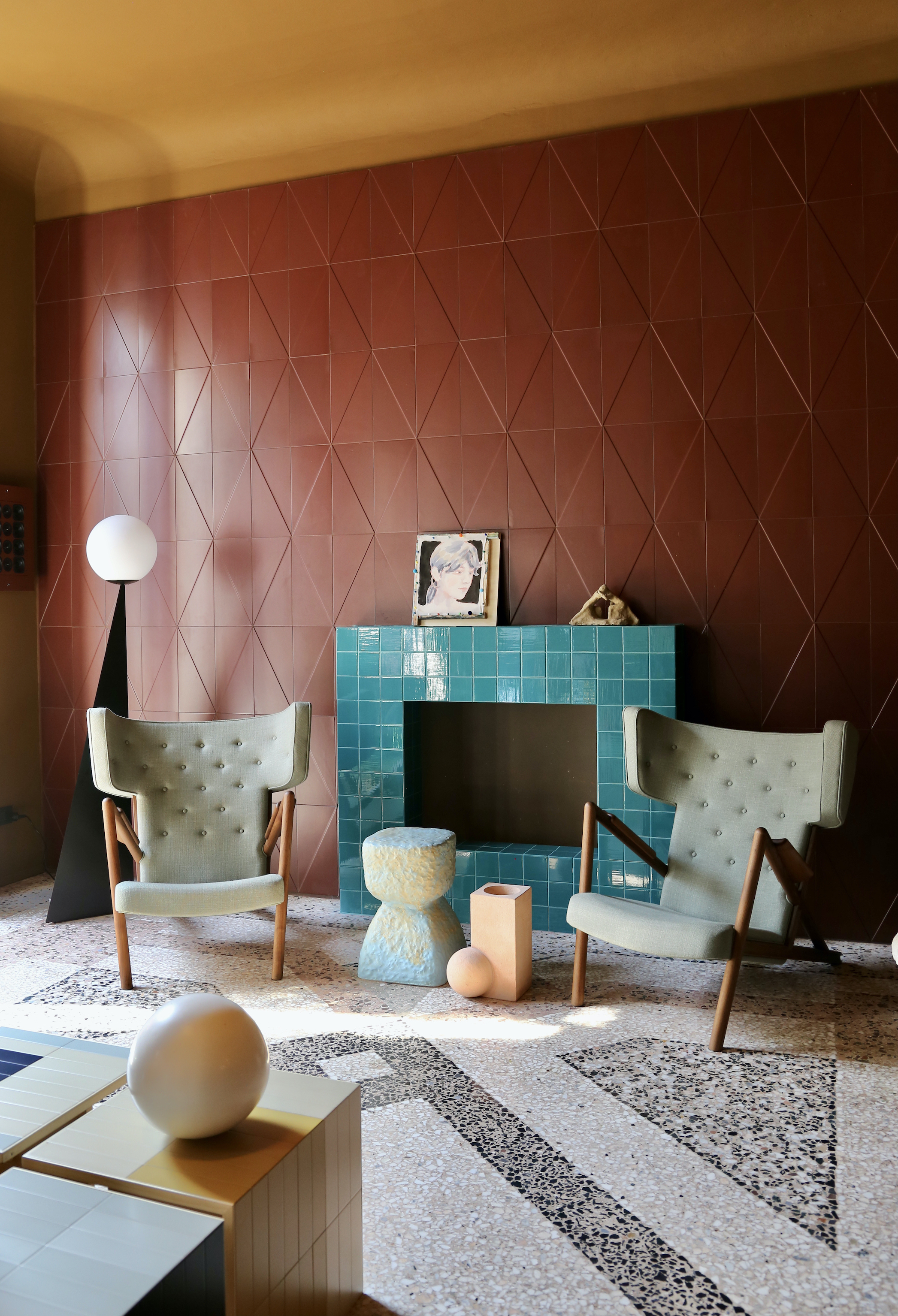 Long-term collaborators Elisa Ossino and Josephine Akvama Hoffmeyer first met in 2002 when Ossino, a Milan-based interior designer, approached Hoffmeyer. Hoffmeyer is specialized in handmade clay tiles and paint at File Under Pop in Copenhagen, during the renovation of her Sicilian home. “We admired each other’s’ work,” says Ossino. A decade later, the two collaborators set up a design studio, H+O, in a spacious 18th-century apartment in Milan’s elegant Brera district. The creative duo who also are running independent creative businesses, transformed the apartment during Salone del Mobile Milan 2021 into the installation I’ll be Your Mirror, which were inspired by a song by The Velvet Underground. While the balance of material, colours and texture lay at the very surface of interior, the installation urged the spectators to contemplate on their own significance and appearance within space and time.