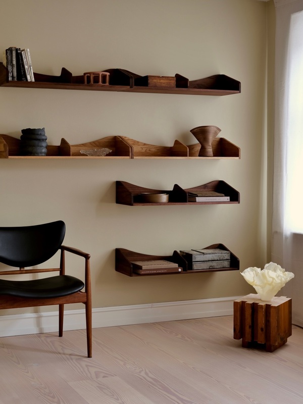 The Hulsø Shelf's organic silhouette becomes more pronounced when multiple shelves are arranged together in a formation.
