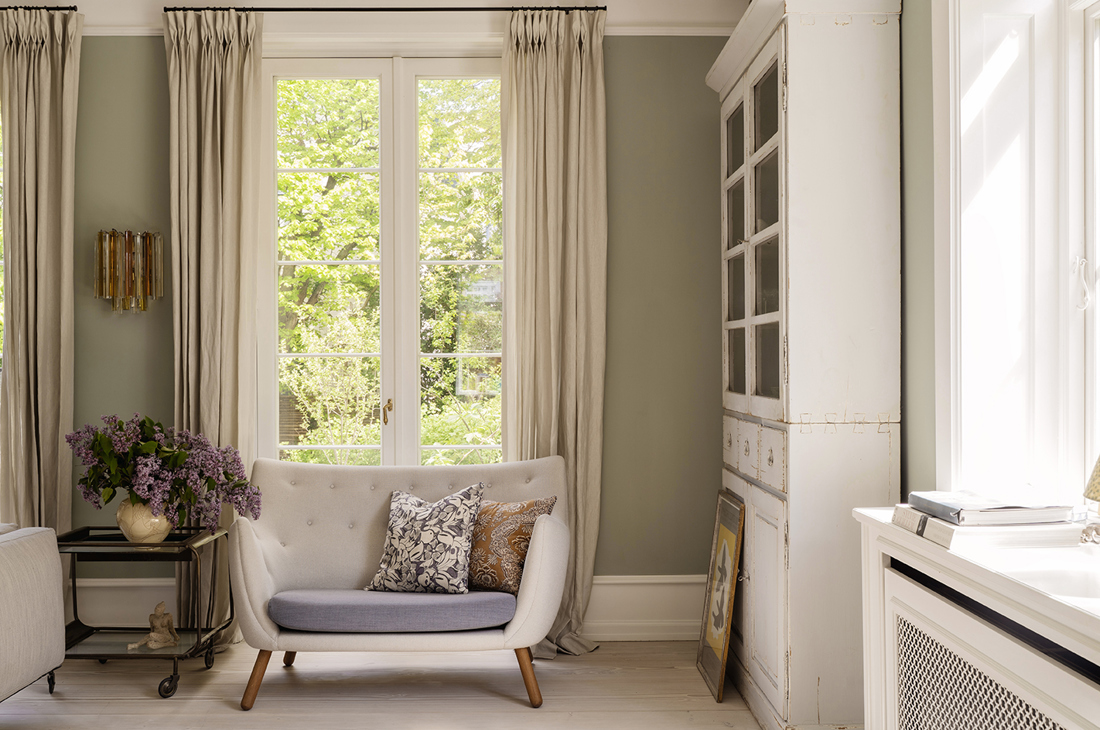 In Denmark’s oldest villa district in Østerbro, where majestic homes from the last century line the streets beneath protected trees, jewelry designer Nadia Shelbaya lives with her husband Morten and their two children, Andrea and Sofus. In a villa from 1860, they’ve created a warm, lived-in space filled with vintage finds and carefully chosen design pieces – including a Poet Sofa, which sees plenty of use from adults, kids, and the family dog alike. It was actually one of the first pieces they bought for the house.