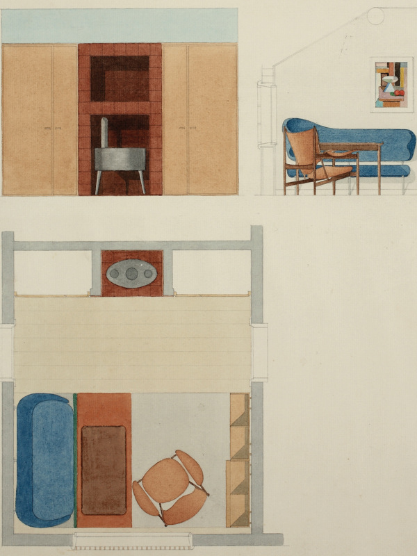 " The great body of work, which is housed at the Danish Design Museum, consists of a large collection of watercolor drawings which depicts furniture, exhibitions and interiors. The drawings are pieces of art in their own right, but they also offer special insight into the way that Finn Juhl understood and employed colors throughout his career. "