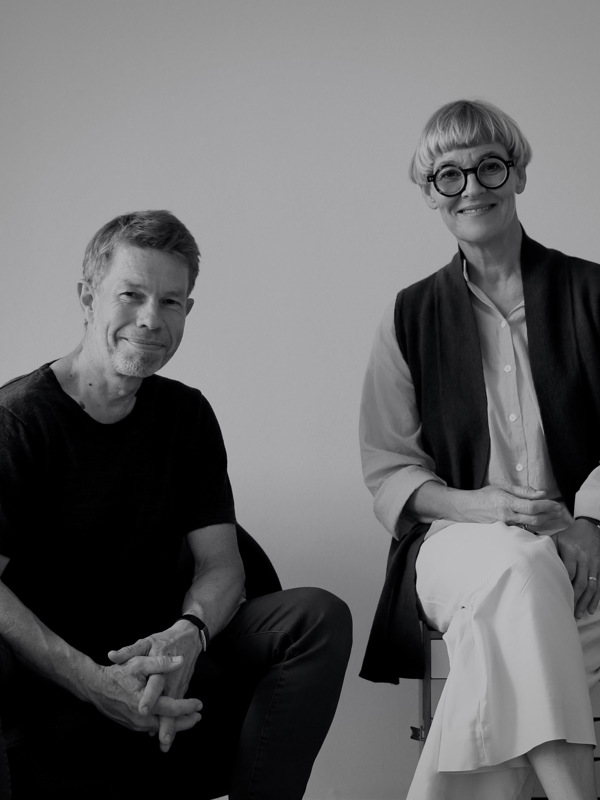 Portrait of Hans Henrik Sørensen, co-founder of House of Finn Juhl, and Lykke Bloch Kjær, designer of the new textile collection.