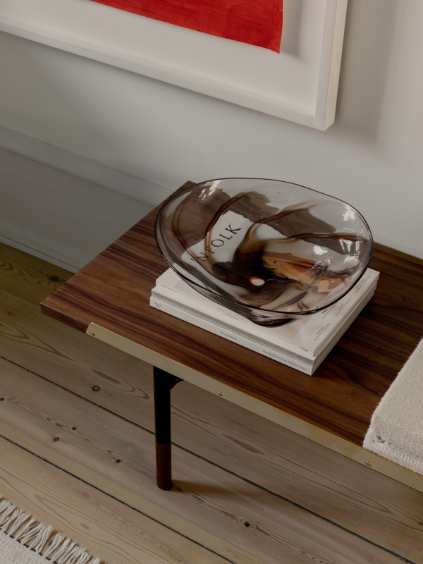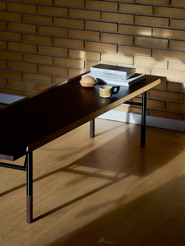 The Table Bench is a uniquely elegant piece that adapts effortlessly to different uses around the home. Its sophisticated design combines contrasting materials and textures in a timeless way. Perfect as a low table for books and art or as a comfortable seat with an optional cushion, the Table Bench remains one of Finn Juhl’s most beloved designs. It can be customized with two solid brass strips along the top to keep the cushion in place, creating a convenient spot for personal items beside the seating area.