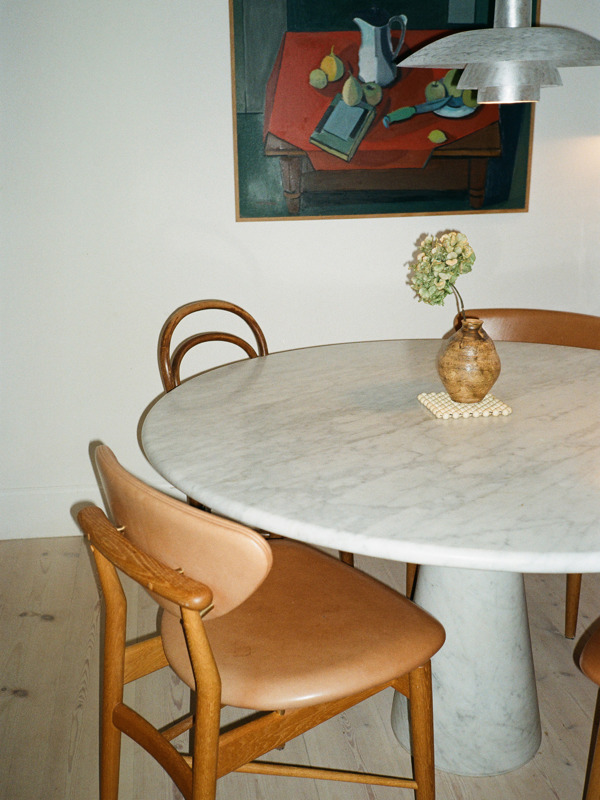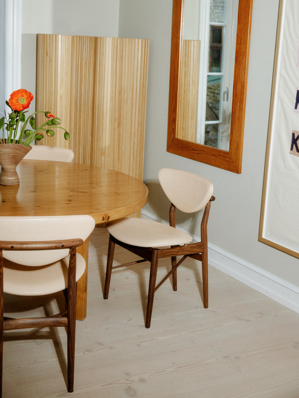 Finn Juhl's philosophy of separating the carried from the carrying elements – thereby creating a light and floating expression – is clearly reflected in the 108 Chair. Though fully upholstered and exceptionally comfortable, the chair retains a visual lightness and looks beautiful from every angle. It features a finely crafted wooden frame with seat and back upholstered in either textile or leather, making it a sophisticated addition to any dining space.
