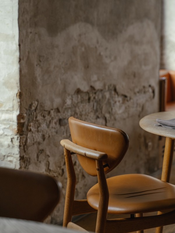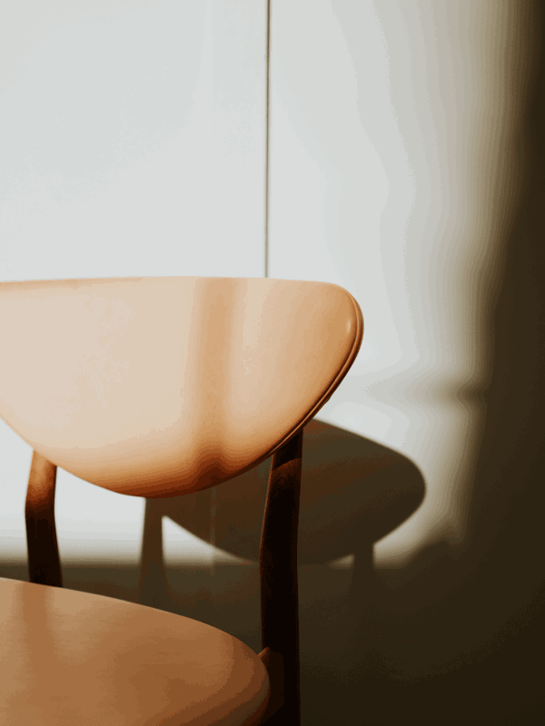 At first glance, Finn Juhl's 108 Chair from 1946 appears deceptively simple. But on closer inspection, subtle details emerge – angled side bars and sliding cross bars introduce unexpected movement and a dynamic structure. Thanks to its durability and refined proportions, the 108 Chair is featured in several exclusive restaurants. Each chair is upholstered by hand in Denmark, in either textile or leather. The frame is available in oak, walnut, or black-painted finishes.