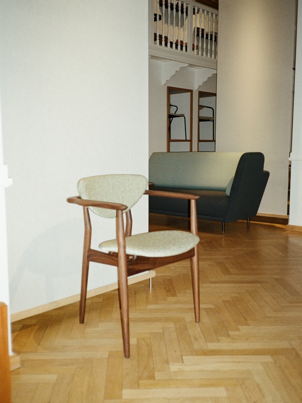 The 109 Chair in walnut with 'Beda' upholstery in the colour '970'. Photo: Elisabeth Heltoft for Sahco