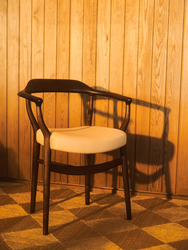 With the 44 Chair, Finn Juhl shaped wood into a fluid, organic form that evoked the structure of bone, earning it its distinctive nickname. In 1944, he described the chair's appearance as having "an animalistic pleasing character."