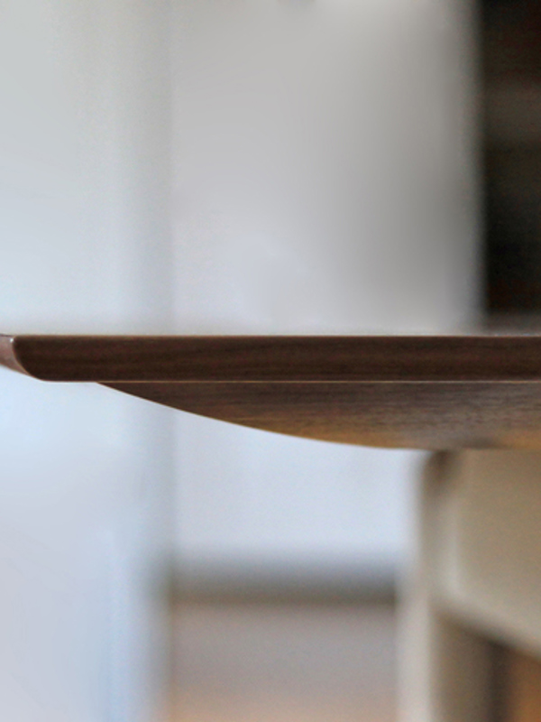 Details of the Kaufmann Table. Manufactured in oak and walnut.