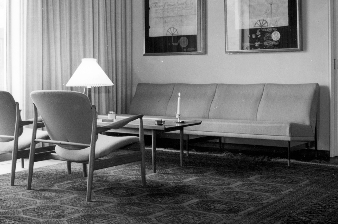 Two France Chairs as part of Finn Juhl's interior of the residence of the Royal Danish Embassy in Washington D.C. Photo: Designmuseum Danmark.