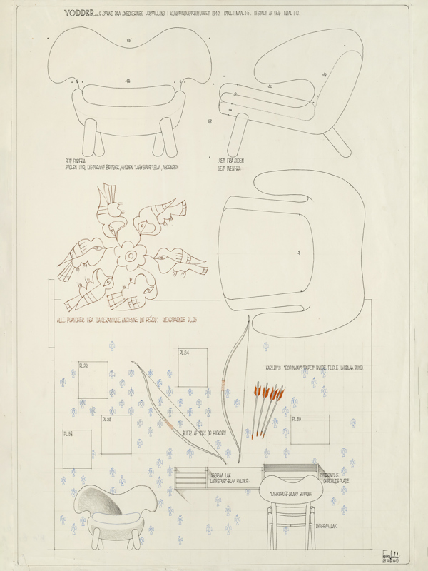 Finn Juhl's original drawing of the Pelican Chair from 1940. Photo credit: Pernille Klemp, Designmuseum Danmark