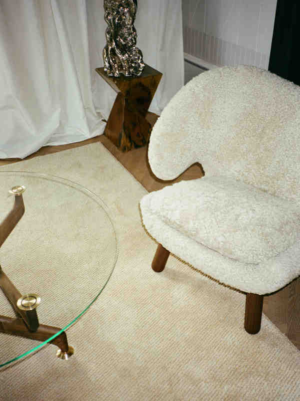 Soft, organic, and sculptural – Finn Juhl's Pelican Chair naturally invites tactile materials. Sheepskin complements its flowing curves with an equally organic character, enhancing the chair's welcoming form and enveloping the seated person in warmth and comfort.