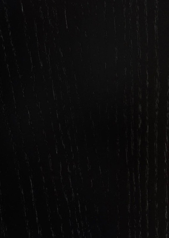 A black paint is applied to the oak. The treatment protects the surface and makes it resistant to water and stains while leaving the grain structure visible.