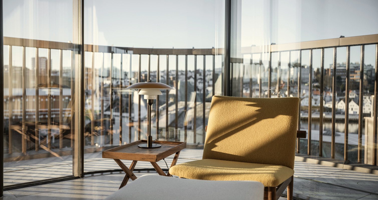 Eilert Smith Hotel is located between Stavanger’s old wooden houses and modern high-rise buildings. The exclusive and boutique hotel with only 12 rooms is named after architect Eilert Smith, who originally designed the building back in 1937. In the 1930’s functionalist architecture was popular in Stavanger. Institutions, businesses, and private houses were built in this new and international style. The building in Nordbogata 8 was not designed as a hotel back then, but as a shop and storehouse for the local farmers’ cooperative.