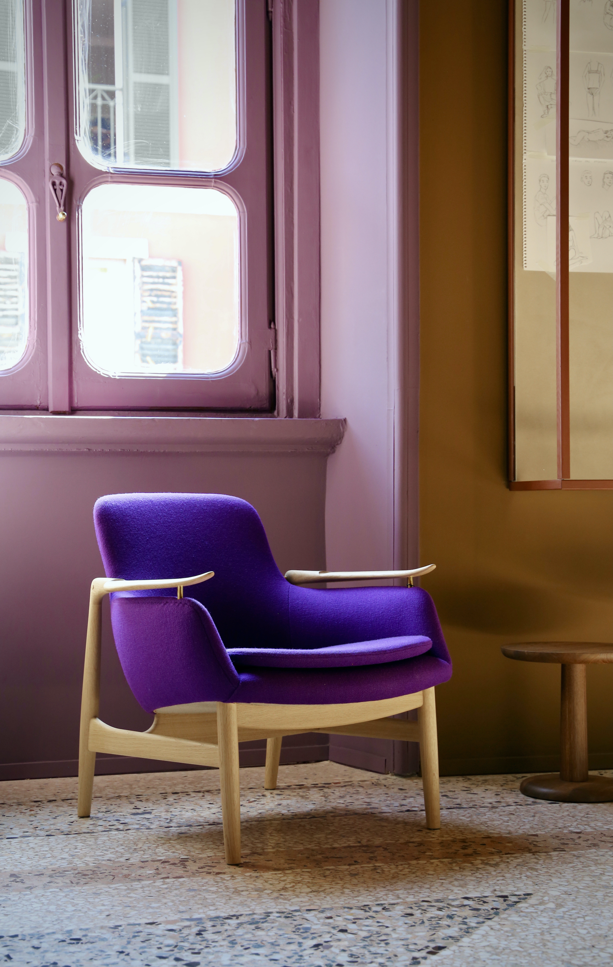 Discvoer the range of Finn Juhl pieces featured in the 'I'll Be Your Mirror' apartment installation. Click through the furniture below to dive into the history behind the creation of the individual pieces and find inspiring, captivating images along with information about material options and the sizes available.