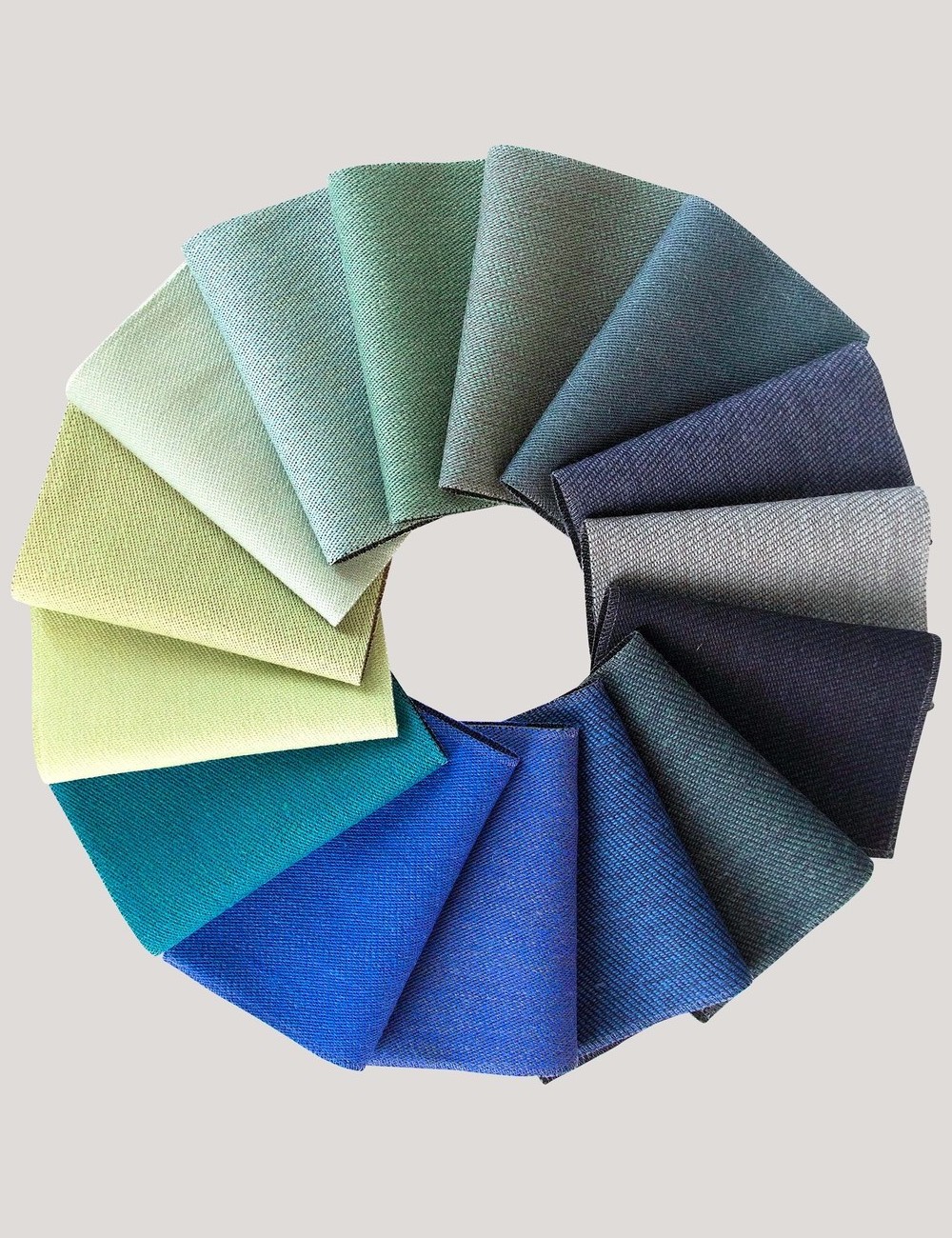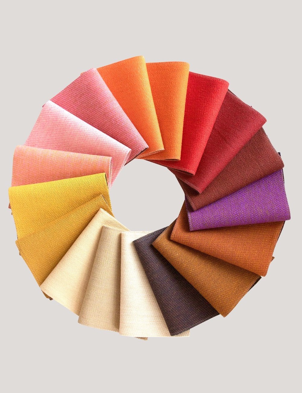 As part of this process, Ivan Hansen and Hans Henrik Sørensen got together with Lykke Bloch Kjær, to compare colored warps of wool thread with each watercolor drawing, to determine how different color combinations will blend to create the nuances used in the original drawings. As a result, an entire spectrum of colors arose. House of FinnJuhl and Lykke Bloch Kjær have opted to name each color in a sensuous manner, such as: 'Soft Linen', 'Butterscotch Yellow', 'Grey Eucalyptus', 'Dark Chocolate', 'Himalaya' and 'Silver Azure'.